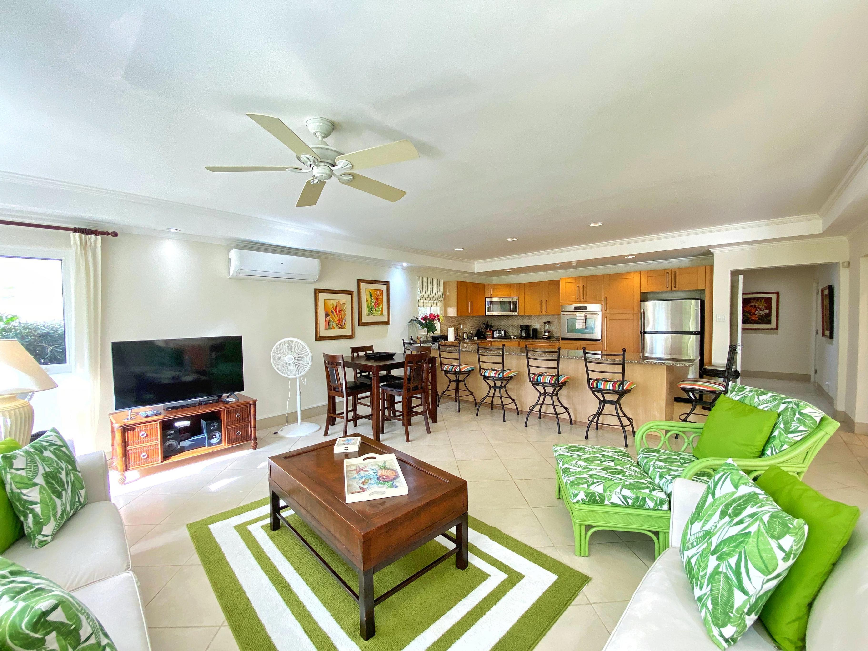 Immerse yourself in the tranquillity of this meticulously designed condo, which boasts a seamless blend of contemporary elegance and Caribbean charm. Step into a world where comfort meets sophistication, where every corner is thoughtfully curated to cater to your every need.
