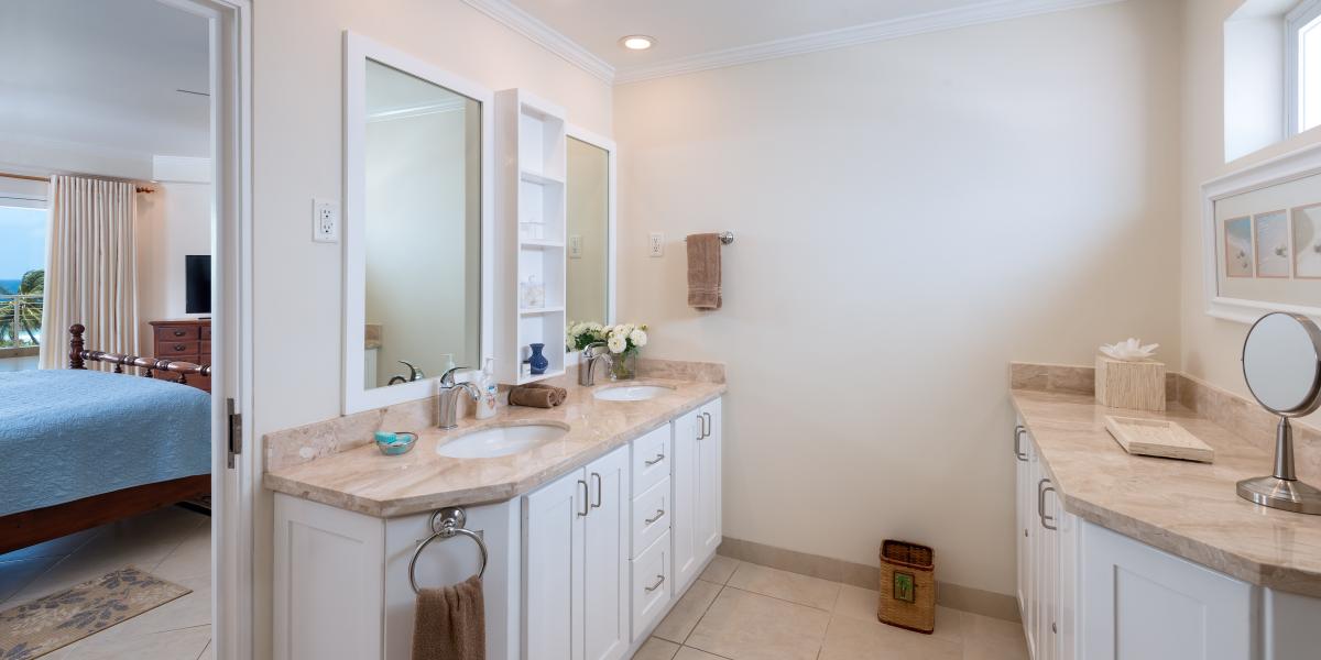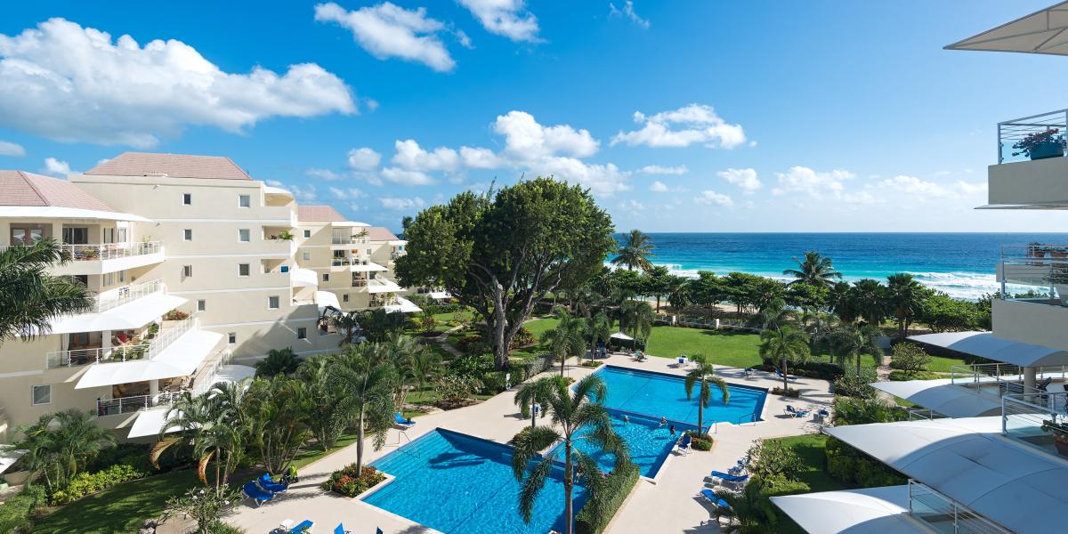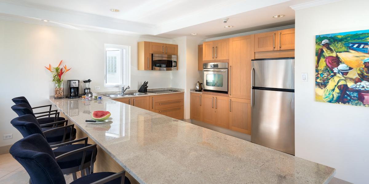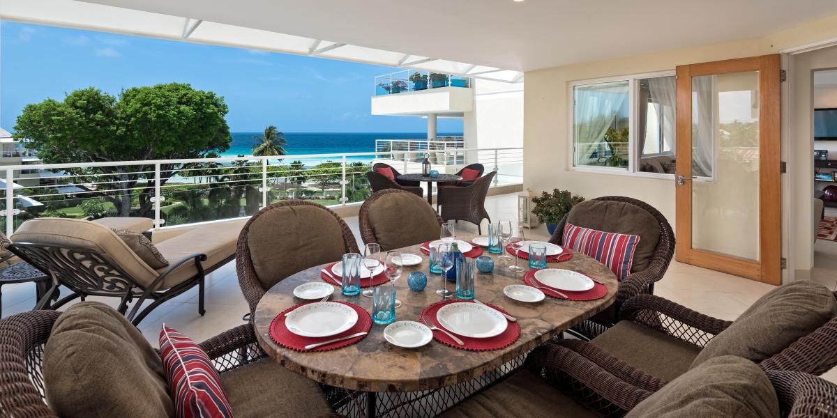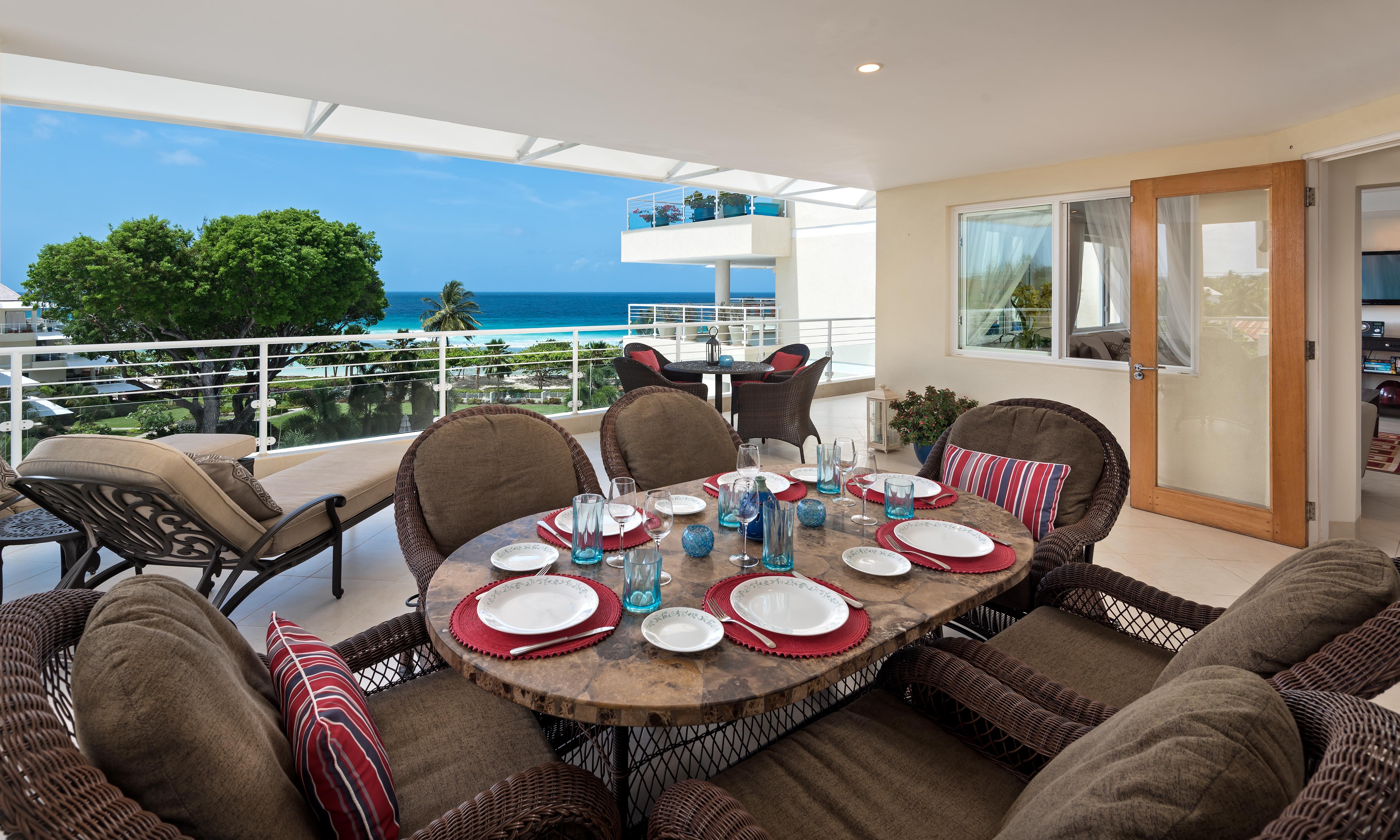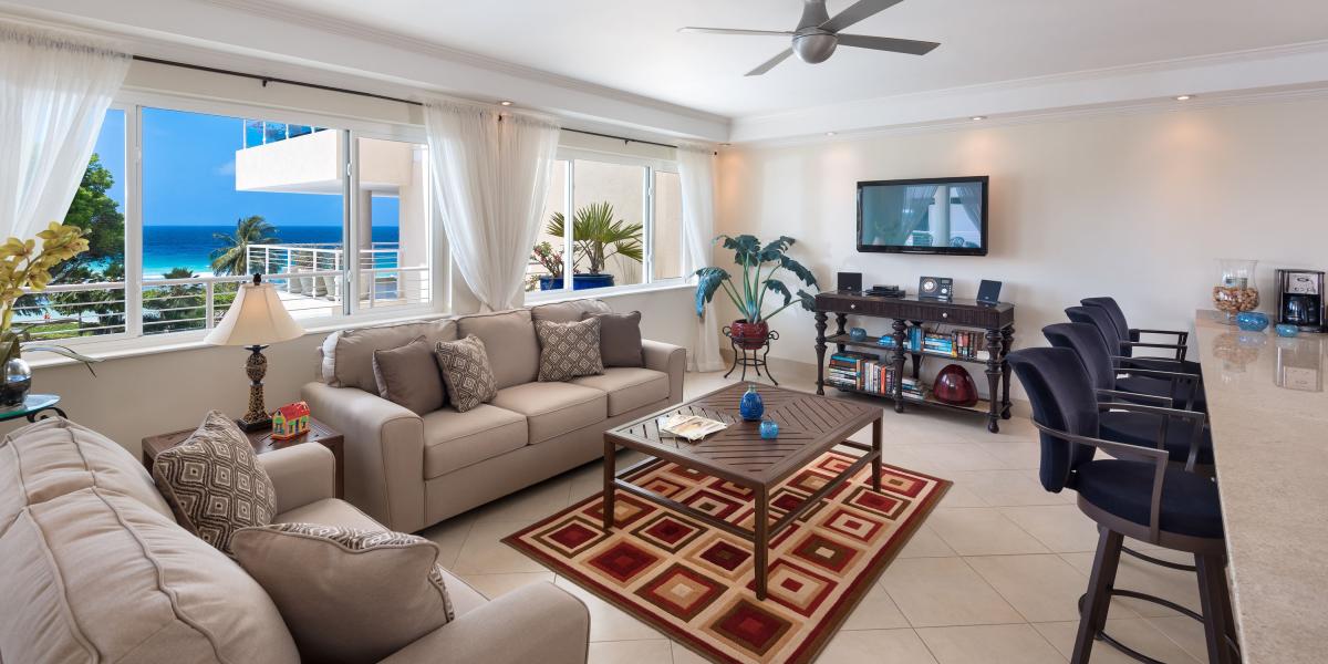 Palm Beach 509 is a beautifully decorated two-bedroom, two-bathroom fully furnished beachfront condominium with panoramic ocean views of the South Coast of Barbados. Located just minutes outside of Barbados’ capital city Bridgetown, Palm Beach 509 is a great choice for vacation travelers and persons coming to Barbados for business trips. Unit 509 is positioned in such a way that it takes in some fantastic sea views and views of the lush and tropical gardens that cover the grounds of Palm Beach.