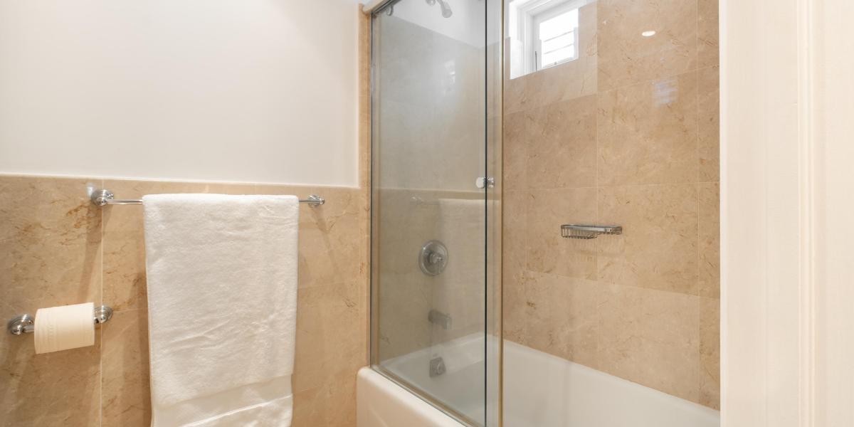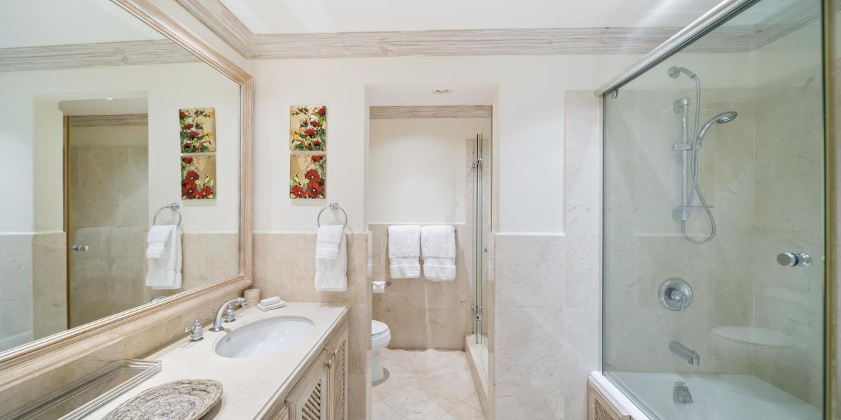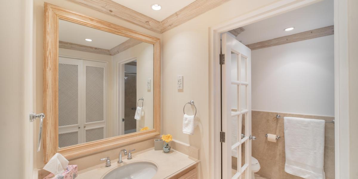 Both bedrooms feature ensuite bathrooms, air conditioning and small private balconies. Open the balcony doors to allow the cool Caribbean breeze to enter.