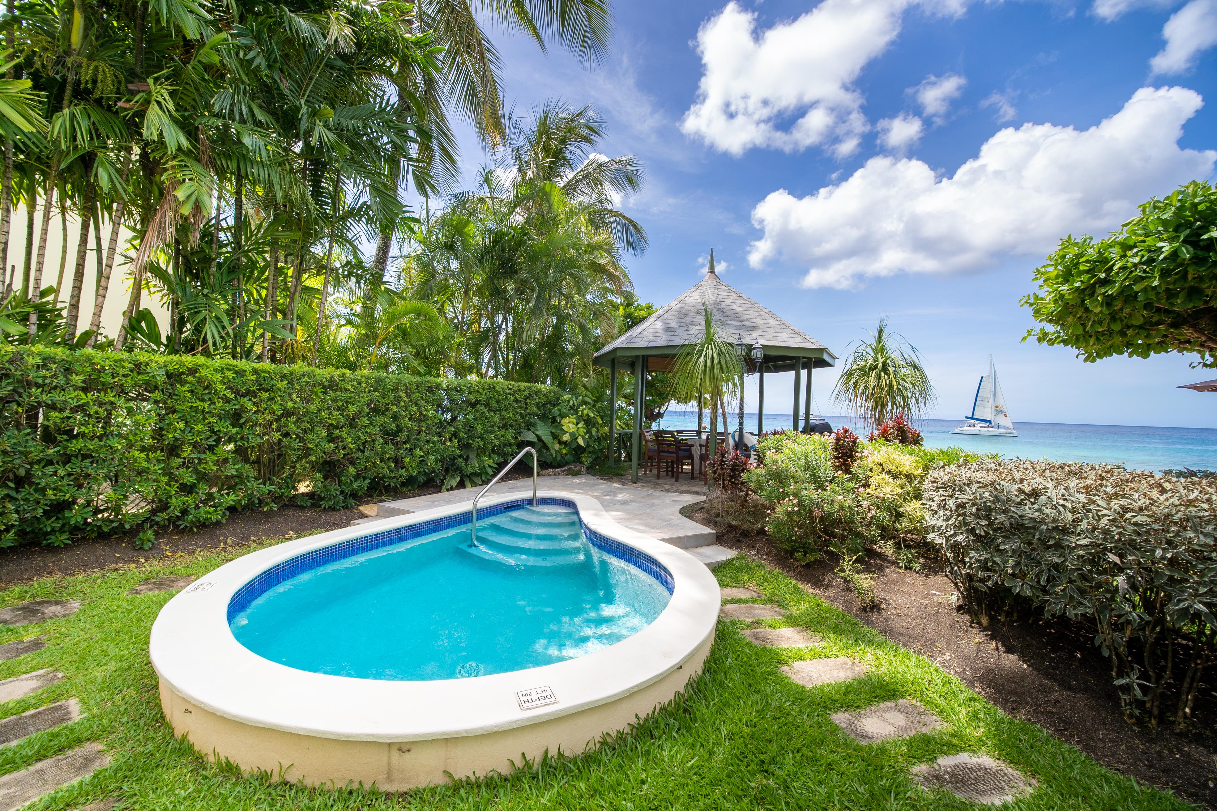 One of Seawards' highlights is its outdoor living space. A private pool and patio area beckon you to soak up the sun and take refreshing dips at your leisure.